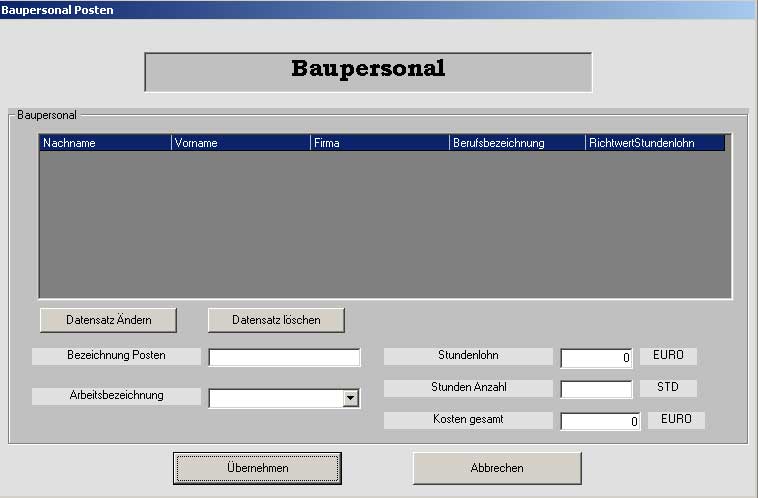In dem Fenster "Baupersonal Verwaltung" wird